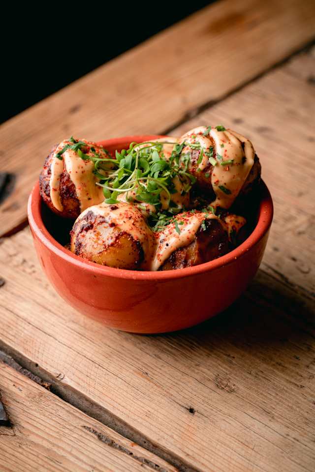 - Pommes de terre adobada piquantes, tajion, mayonnaise chipotle & coriande