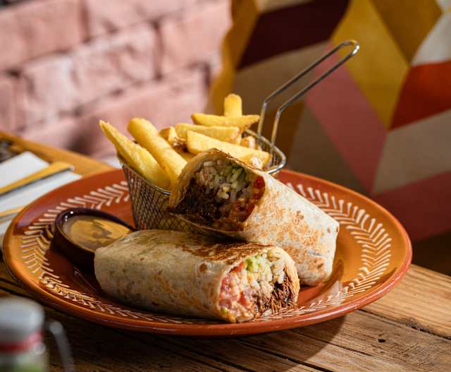 - Grande tortilla de blé, garnie de cheddar fondu, pico de gallo et une viande au choix