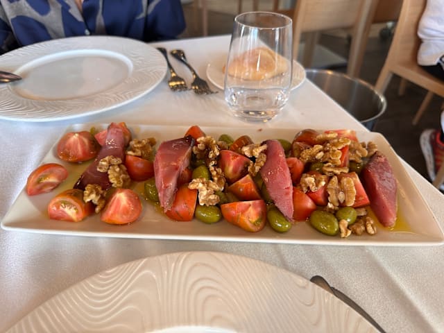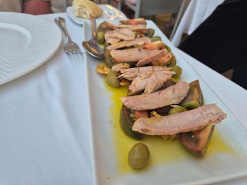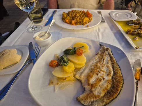 7.5/10The location on the seafront is great and the staff were very friendly and welcoming. We enjoyed the mullet roe starter, however the tomatoes in the tuna and tomato salad were tateless. My husband enjoyed his paella. I ordered the turbot which is my favourite fish. Unfortunately it was overcooked and I couldn't eat it. When I told the staff they disagreed and said it was perfect-- they didn't taste it though. Maybe they were having a bad day or thought we were tourists. Nor sure if we'll go back, there are plenty of other places