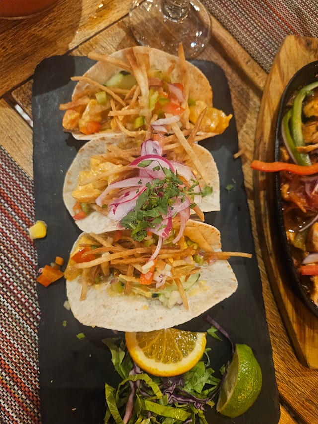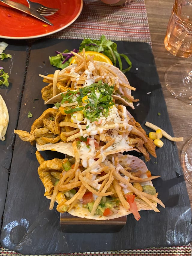 4.5/10We waited almost 2 hours for food and then it arrived wrong. Long wait for starters , drinks etc . Felt sorry for the waiting on staff who were lovely and apologetic. The food was average i have had much better Mexican food elsewhere . I would not return or recommend .