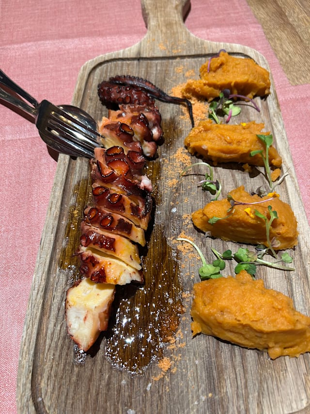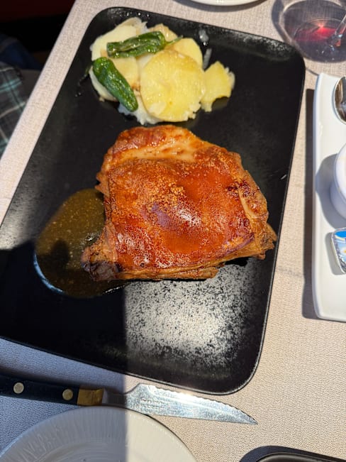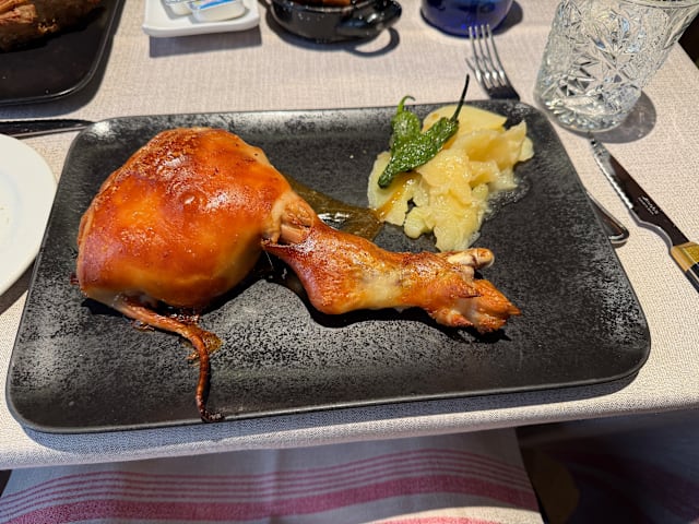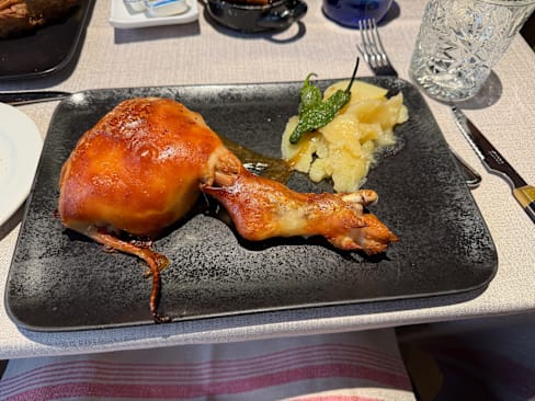 8.5/10Our suckling pig was fabulous. Crispy skin, tender and moist meat. We couldn’t have asked for a better dish. The bread was dried out and not good. Two of the three servers were great and the third one was horrible. I don’t know what his issue was, but I hope we never encounter him again. But like I said, the pig was great and even worth the obnoxious server.