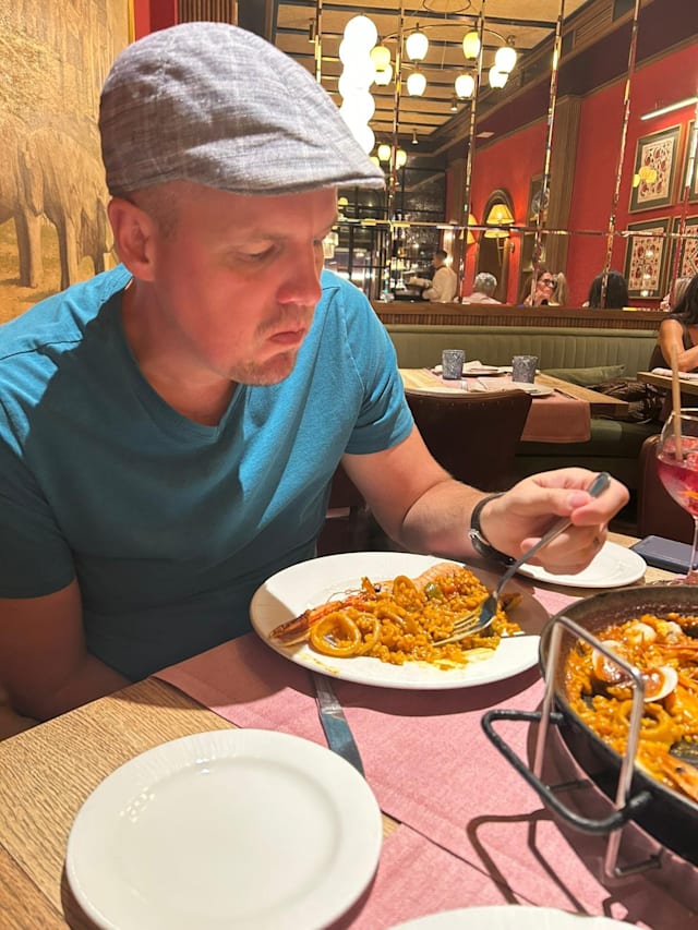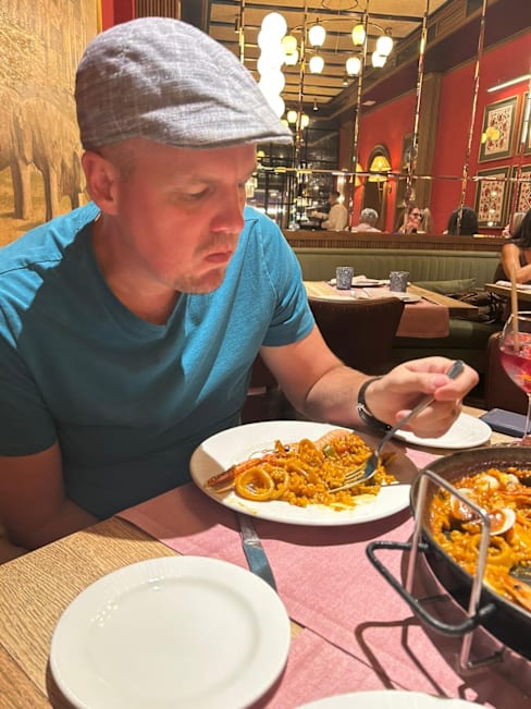 4/10I can’t believe that in the most touristic area of Madrid none of the waiters was speaking English. None of them was smiling, behaving like we were bothering them. The salad came and no one was giving you any salt-pepper or oil extra . The food was tasteless and as of the paella I have eaten better ones . We payed 100 euros for a salad,an octopus and the paella. I don’t mind paying a thousand euros if it’s worth it but unfortunately it was not.