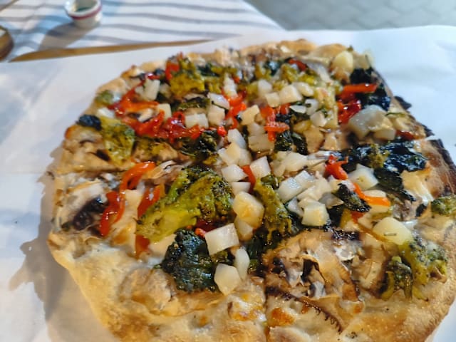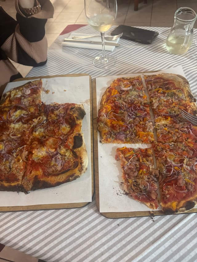 10/10Great pizza. Love it that you can choose from 2 sizes. Great friendly service. House wine is very good. Prices very reasonable. Highly recommended.