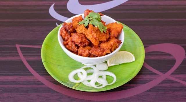 - Spécialité de l'inde du sud, morceaux de poulet marinés aux épices du sud et frits