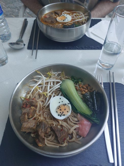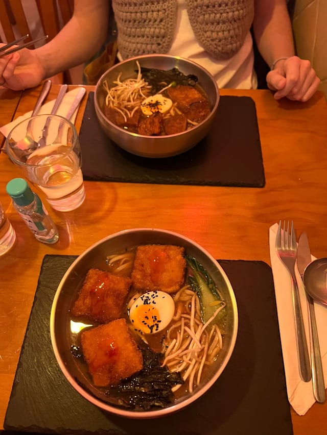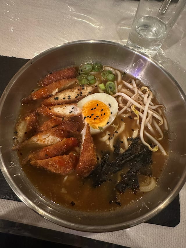 10/10Food is very tasty & service nice. The patio is in a quiet pedestrian street so no cars & nice people watching. Had the ramen with tofu & the chicken wings. Both very good!