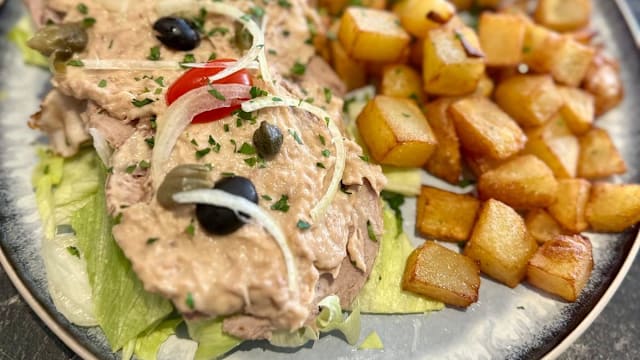 Servi fondant, accompagné de pommes sautées et d'une salade verte. → nature ou truffe