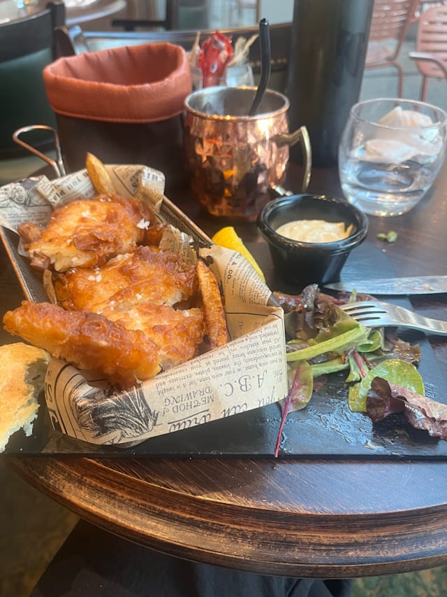 8.5/10Speedy service. Live music on the terrace,football on tv inside. The burger was excellent,fish was ok,dessert excellent.