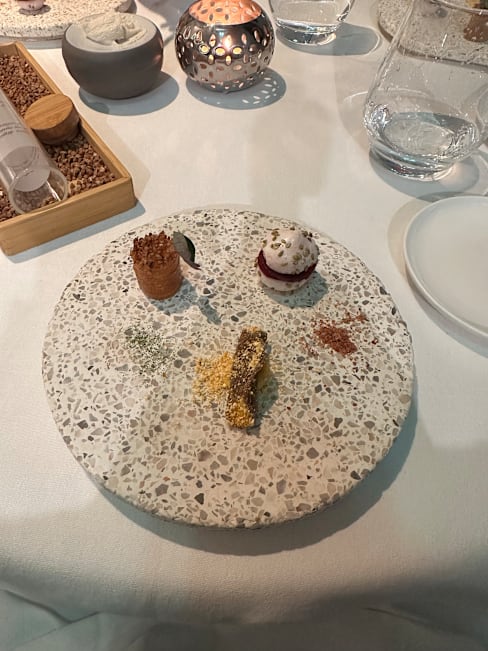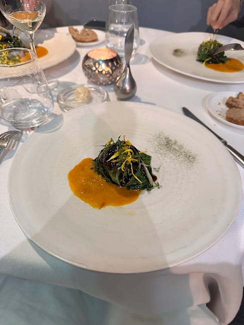 3.5/10All of the food tasted like rotten fish. Seaweed or something very pungent in every dish that was very offputting. Followed by desert of vegetable ice cream. Crunchy things were stale, meat was tough. Blarg. €235 without drinks for 2. The waiter was kind and professional.