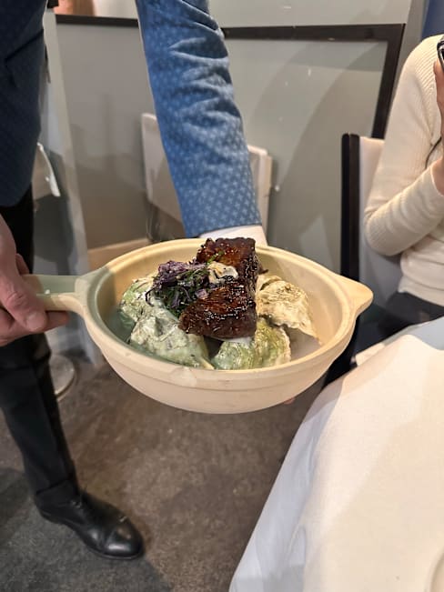 Hi, Thank you for taking the time to share your opinion. We are sorry to read that your experience did not meet your expectations. However, we would like to clarify certain points in your comment. First of all, we did not have seaweed on the menu on June 10, and we do not offer a plant-based dessert. We understand that tastes and perceptions may vary, but there seems to be a misunderstanding about the composition of our dishes. Also, we take note of your very aggressive comments regarding the freshness and texture of some of our dishes. Please know that we attach great importance to the quality of our ingredients, we are lucky in Paris to have them delivered every morning by our local artisans and from our French countryside who bring us the best of the season. We are delighted to read that you appreciated the service from our team. For the price, you have chosen 2 7-course menus at €115. . Best regards. Stéphane Pitré