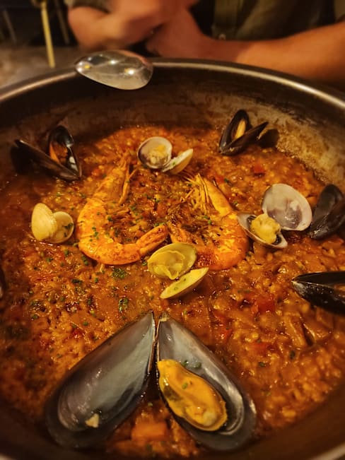 7.5/10Restaurant was difficult to find (easy to miss the entrance on a busy street. Scallops were bread crumb heavy so difficult to appreciate the taste of the scallops They were out of the empanadas we originally qanted to order. Anchovy appetizer as replacement was delicious. Seafood paella was good. Server was polite and personable. The ambience of restaurant was good (ideal for dates or small groups) with dim lighting.