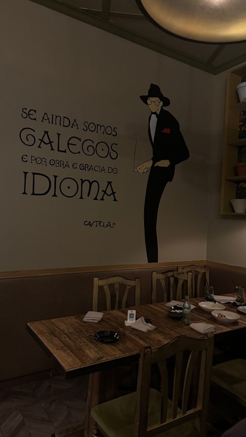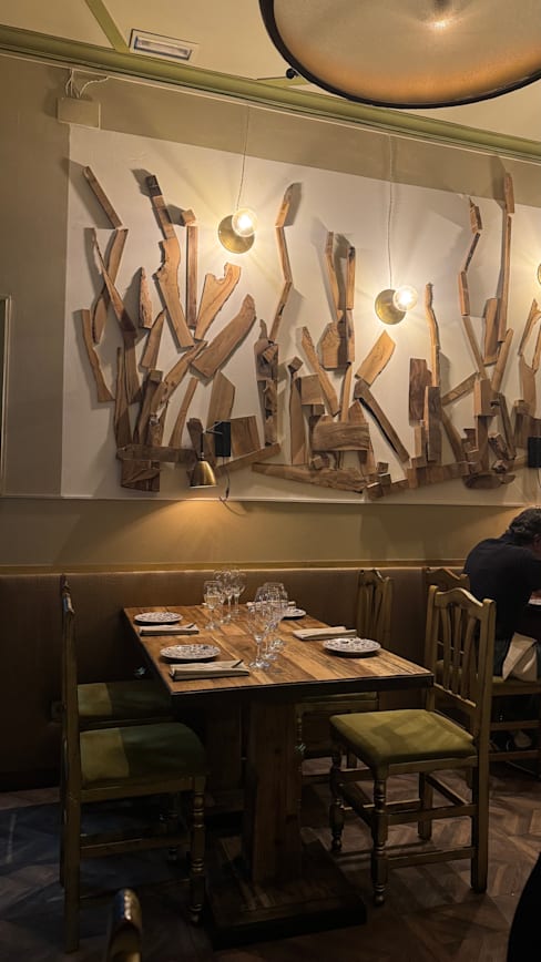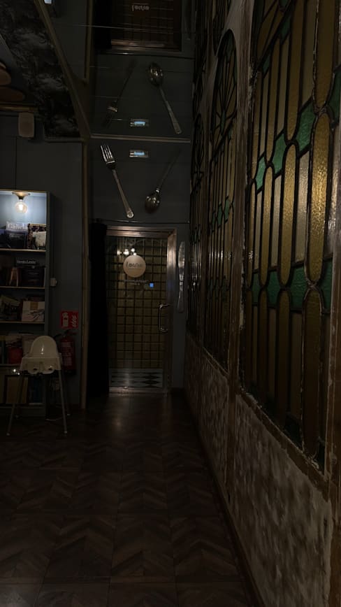 10/10Good service and well prepared food in a very pleasant dinning area. The attention to detail extended to the very tasteful decor with blue and white wall paper and many nice details, don’t miss the WC. The tone is subdued and the music low so it is easy to carry a conversation. We took the elevator up and we’re a little concerned until we arrived at the entrance to the restaurant on the principal floor, we were greeted by nice stained glass and a pleasant ambiance We were here for Sunday lunch and the menu wasn’t very extensive, but it had enough to choose from. We had a couple of appetizers, two main courses, a bottle of water and a bottle of wine , plus some very good Galician bread that came with a tube of olive oil, for around one hundred euros for two people so it is not inexpensive, but it was worth it. I definitely would go back next time we are in Barcelona, there are so many other dishes I would like to try, specially the paella seems like that was a very popular dish.