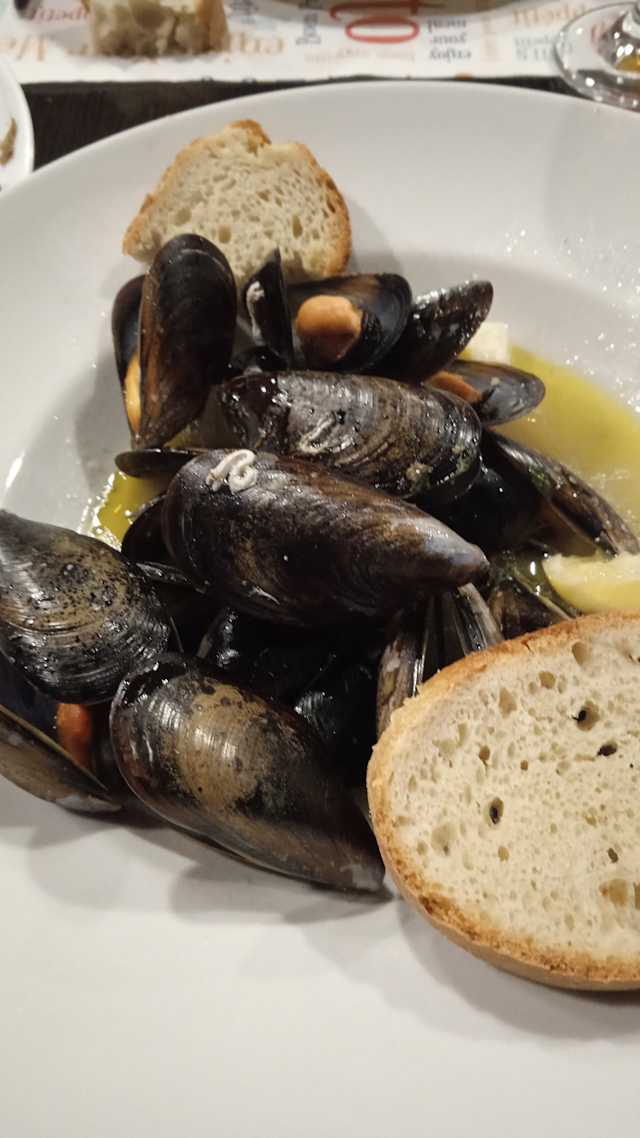 - Impepata di cozze in bianco e bruschetta