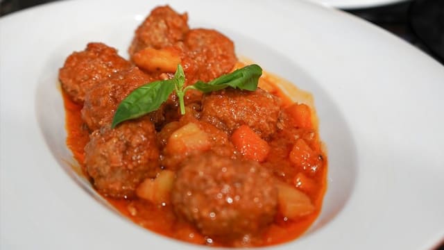 Polpettine di manzo servite con salsa loyal