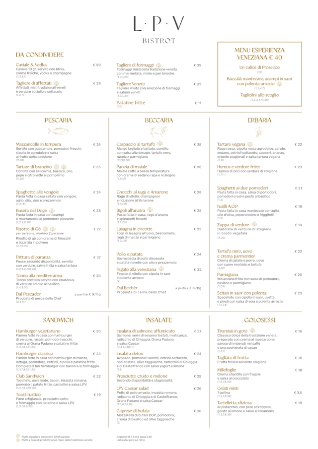 ItalianMeat CuisineMediterraneanSeafoodVegan cuisineVegetarianVenezianoEuropeanVenetianBistroCreativeGood for familiesWith friendsGluten freeVegan dishesVegetarian dishesAmerican ExpressWheelchair AccessibleWifi