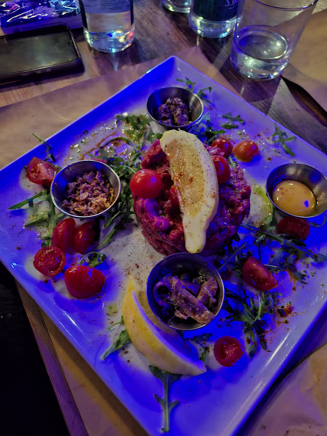 - 500 g di filetto di manzo brasiliano con insalata mista battuta di scottona con capperi, acciughe, uovo.