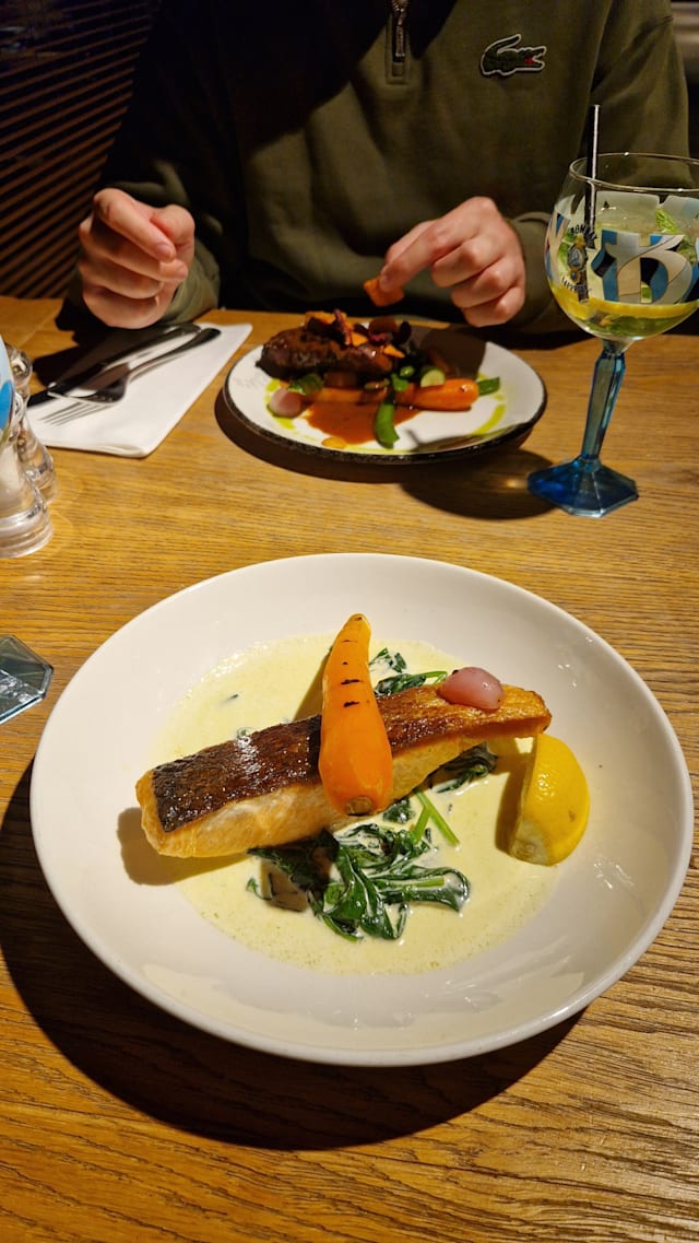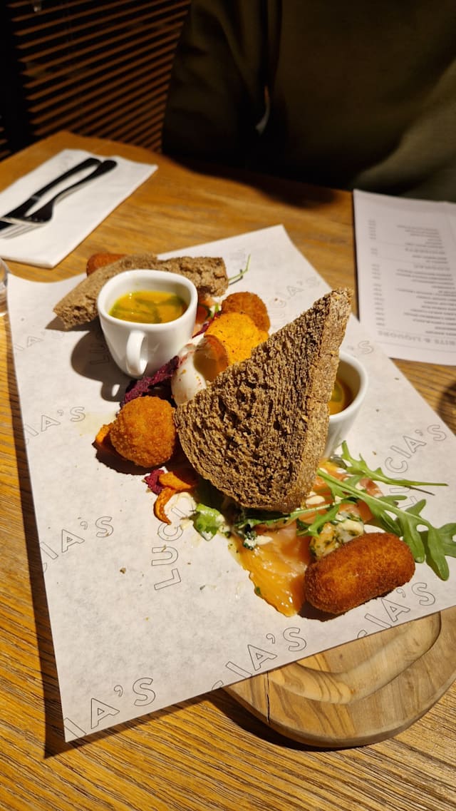 10/10Really tasty food! we had that mix plate with diferent things to share as a started, which was very good! then two mains (one with meat, the other was salmon) also very well prepared. All *food* was 10 out of 10. Recomendation for the restorant: an improvement in the cocktails' taste can elevate the experience...