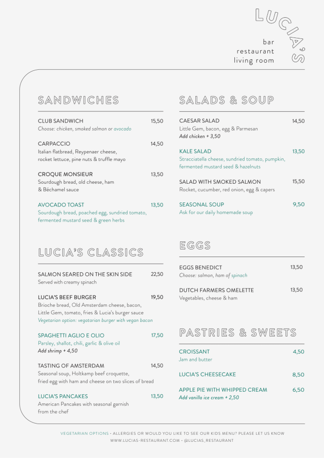 Dear Ronald, Thank you so much for this great review. We are delighted to hear that you enjoyed our pasta of the day. Our chefs love to be creative and create wonderful dishes for you so we are glad you could experience that. We hope to welcome you again at Lucia's Zuidas! Kind regards, Elise