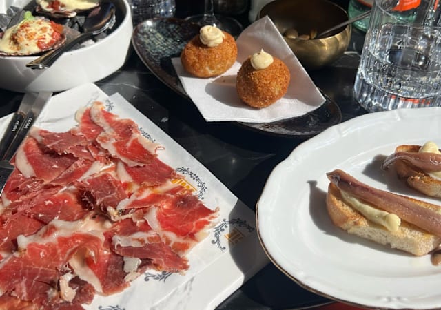 6/10If you do not have a trained palate in Spanish dishes, you may like this place. It is a pity that some important details are not there. For instance: - the ibérico selection (lomo, salchichón and chorizo) was already pre-cut. The slices were cold and dry. It's a shame, becasue you could tell that the quality was OK, but just a careless detail. How hard is to cut them on demand? - The tortilla was really not to the grade. The potatoes are boiled, the tortilla is overcooked. It looks more like a souffle with boiled potatoes than a true tortilla. And adding some aliolli on top does not make it Spanish - The croqueta was OK, but why put mosterd on it? - Pulpo correct (not spectacular), but no peas please. - The cheese platter was the best thing we tried. Good quality. However, it was served as a French cheese platter: with marmalades, nuts, fruit cake, etc. Good, but not faithful to the Spanish way, which is what is advertised in this place. We had a good time, but felt disappointed a bit