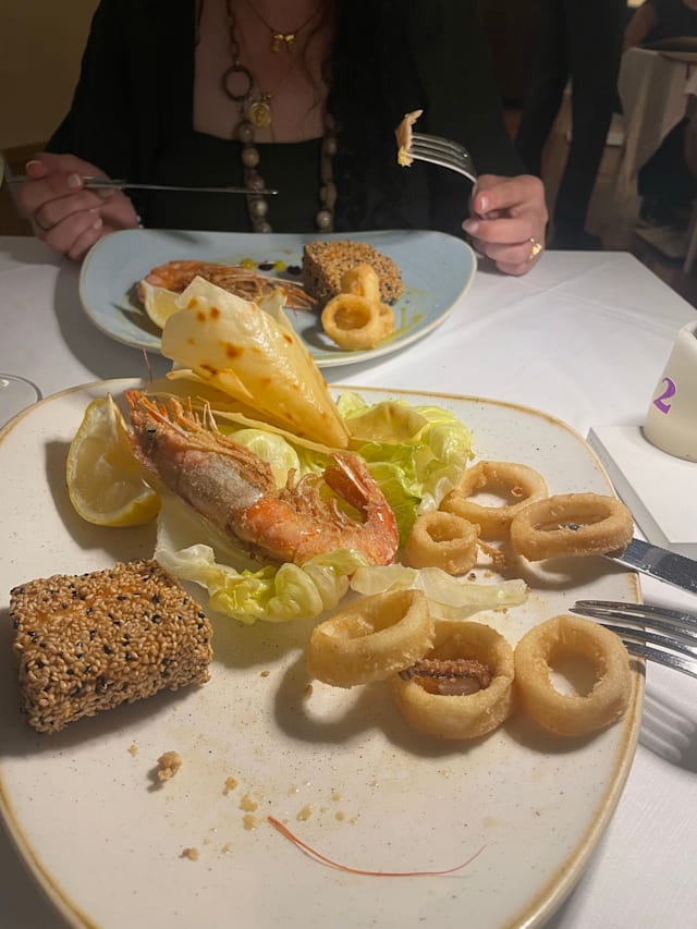2.5/10Nothing went well. The head waiter threw his shoe to the window to kill a bug during our di nner. They brought my son the wrong dish, they gave my husband the wrong utensils for his dinner and instead of giving 4 menus they gave us 4 wine lists. Lastly they charged us a 60 euro service charge for 4 people when online it states the service charge per person is 7 euro.