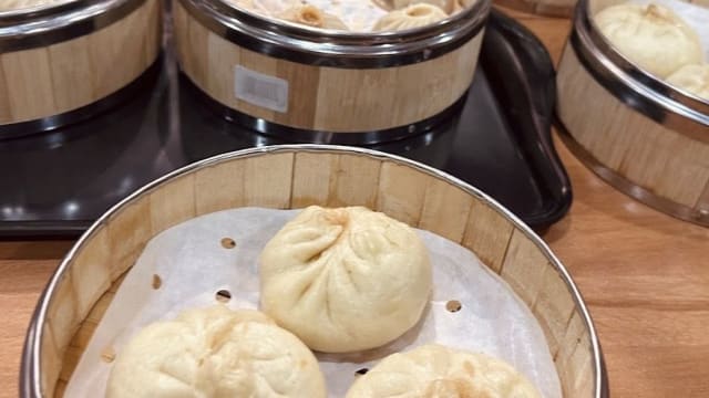 Baozi veggie (3p) (chou chinois,champignons,tofu) une boisson