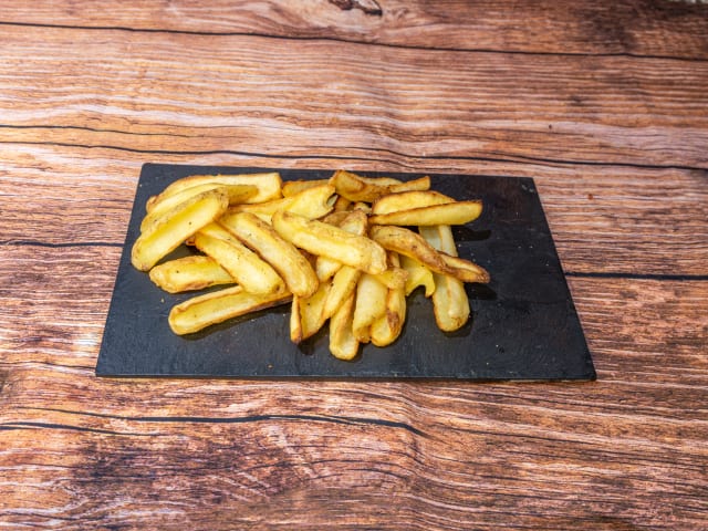 Bun boulanger aux céréales, steack de bœuf français, tranches de cheddar gratiné au four, salade fraîche, tomates du jardin, oignons frits croustillants, cornichons, sauce américaine légèrement tomatée.