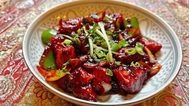 Välj mellan veg- eller kyckling, hemgjorda dumplings fyllda med blandade grönsaker, vitlök, ingefära och aromatiska kryddor. Serveras på en het sizzlerplatta med stekta grönsaker och en smakrik, traditionell nepalesisk sås