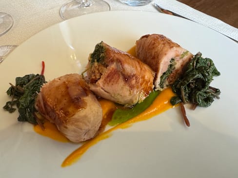 10/10We started with an eggplant appetizer that was cooked to perfection. The two of us could share it. We followed it with our Primi: cannelloni with white Ragu, which was prepared perfectly alongside my risotto. The flavor and depth and accuracy of cooking paid it one of the best risotto that I’ve had. We finished our large meal with duck and a pork tenderloin. Both cooked just right packed with wonderful flavor. We highly recommend this place. In fact, I have friends that will be coming to Rome and I sent a picture of the restaurant to them.
