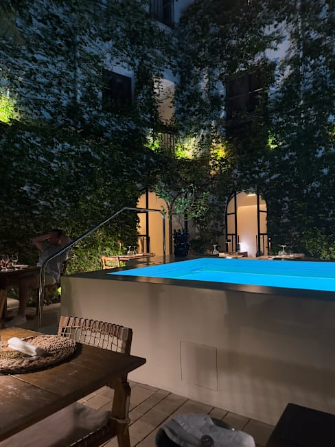 10/10The ambience here is incredible, very quiet and romantic. This hidden gem is tucked away in a beautiful courtyard with tables that surround a small pool. The food was excellent and the staff were attentive and friendly.