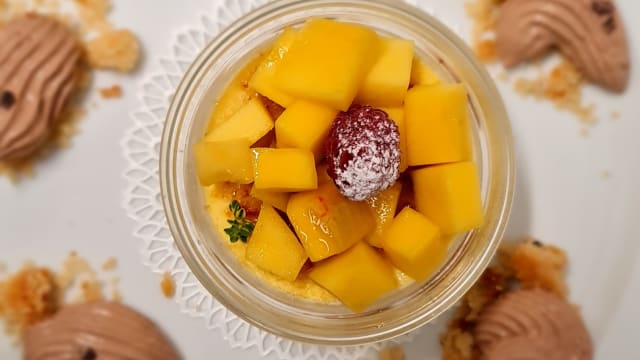 - Con frutti esotici su biscuit profumato al rhum e miele