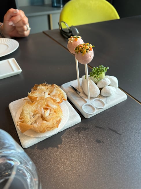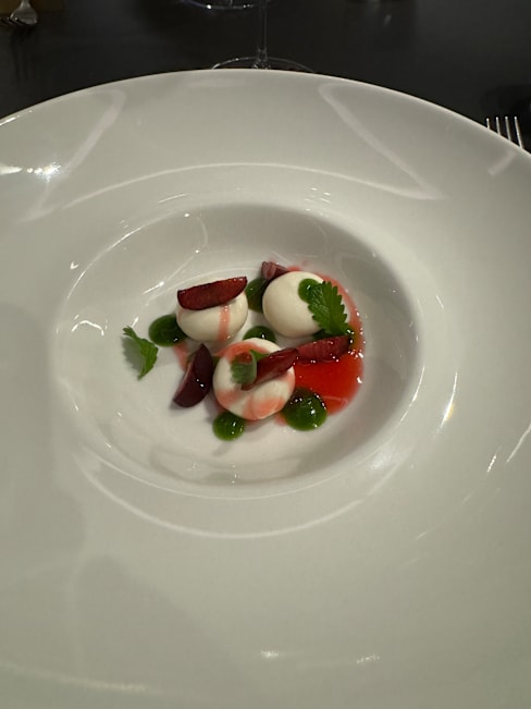 6/10Good location, nice interior. Big and great choice of wine. Food tests complicated, strong and not always evident combinations. Too many ice cream in tasting menu. Very delicate ingredients served (and killed) with very strong taste of another. Was it in the concept to serve so much (even good) bread? Do crying and jumping playing small children belong to Michelin star restaurant?