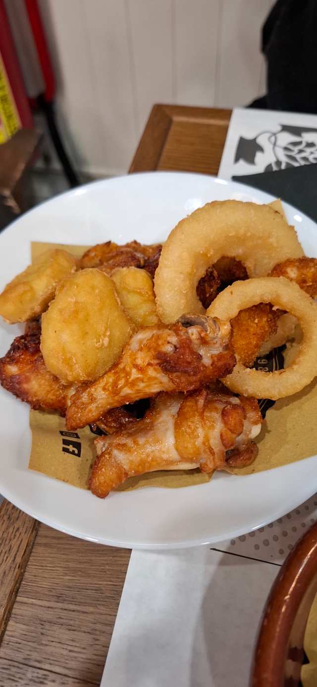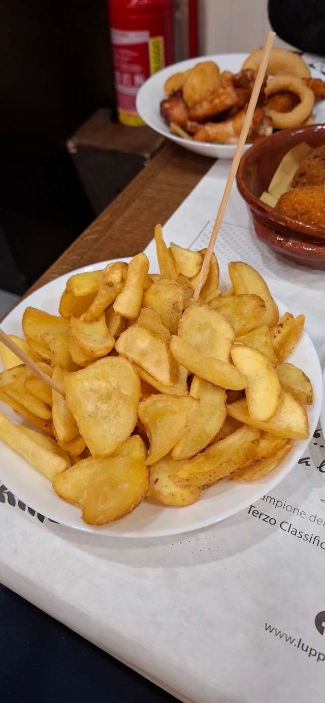 Fettina panata di produzione propria ricetta di nonna santina, pomodoro, insalata, maionese, ketchup, scamorza e carciofini. Servito con patatine stick