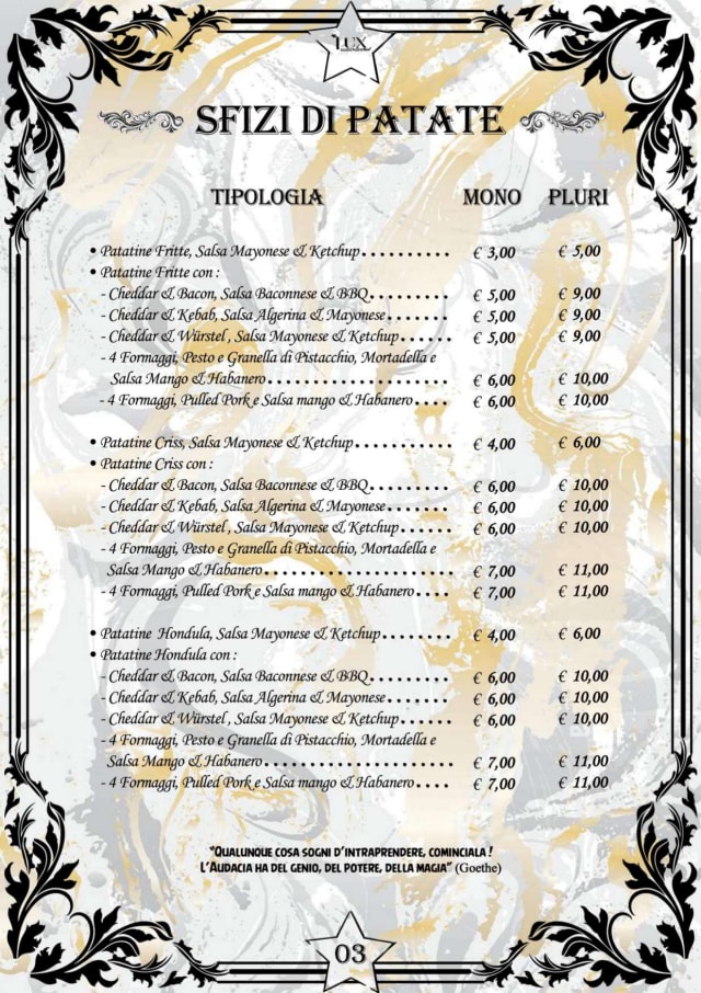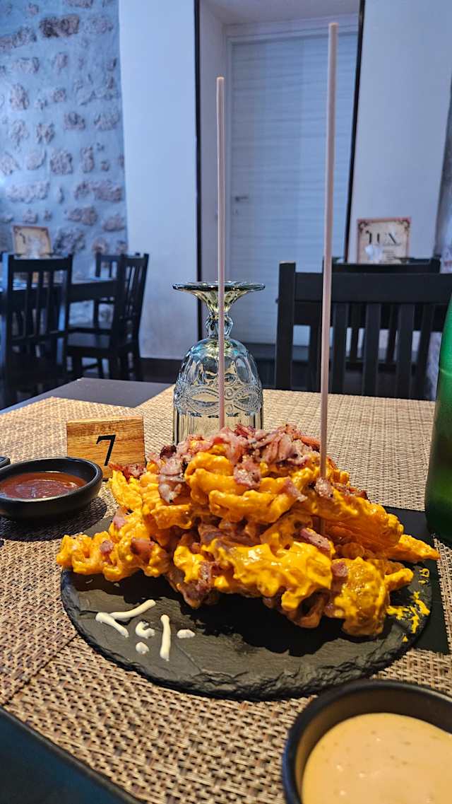 9.5/10Excellent customer service and great food. The waitress and chef both suggested the Patatine fritte 4 Formaggi Pulled Pork e salsa mango & habanero as a starter, Panini (Goodlight), Tortilla (El Caribbean) e Linguine Cacio e Pepe alla Lux (w/salmone). Very large portions and very good.