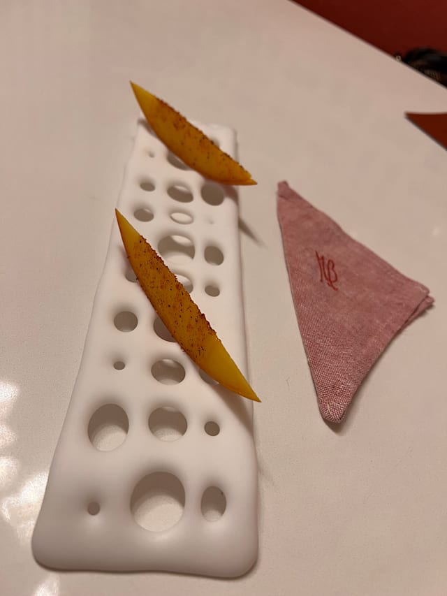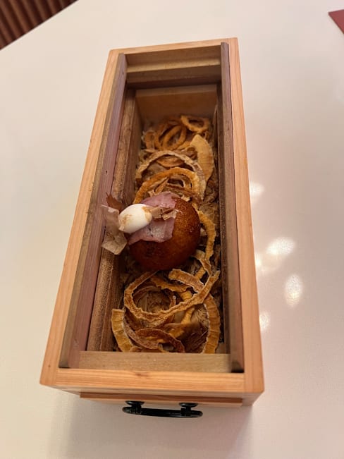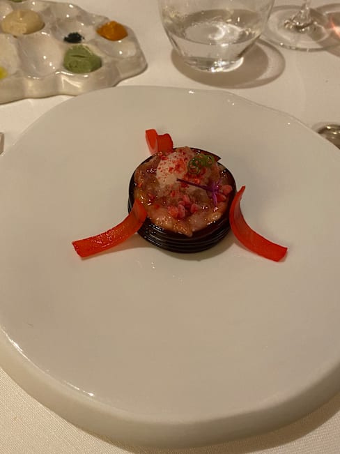 7/10This was disappointing. After having been to MB’s flagship restaurant in San Sebastián and enjoyed it very much, we were looking forward to this meal - but in the end it was very expensive and not very notable otherwise. While a couple of the dishes were good, the majority were not interesting in terms of taste or texture. It is hard to know whether this is because this is an “outpost” that is getting less attention or this was just an “off” date or team - but ultimately, I would not recommend eating here: there are much better meals to be had nearby, for a lot less money (including at the great “Kabuki”, also at the hotel).