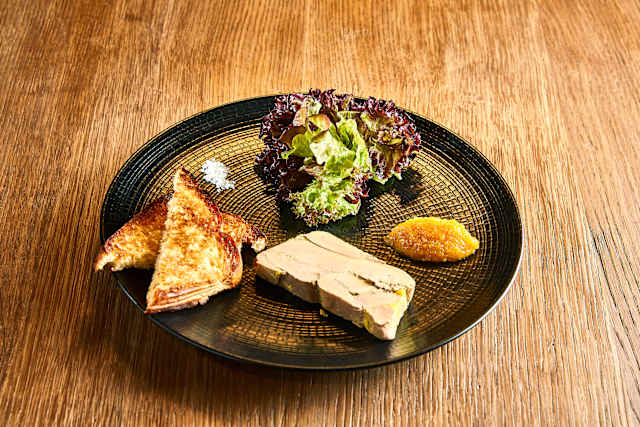 - Terrine de foie gras de canard Maison, échalotes confites au Porto