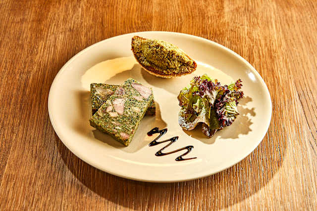 - Jambon persillé du Chef, tapenade de cornichons, algues et moutarde à l'ancienne