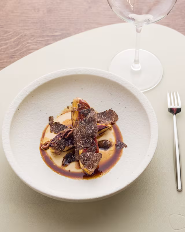 - Ris de veau - ris de veau poêlé, jus truffé, espuma de pomme de terre au beurre noisette