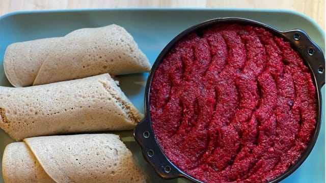 Tibs -ternera, vegetal, especias con injera - tefi