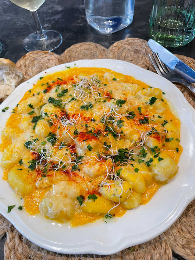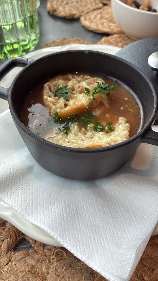 - ( Butternut, ail noir, bouillon de légumes maison, crème fraîche, paprika fumé & comté )