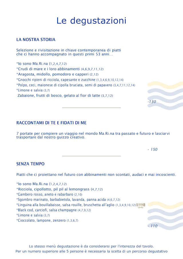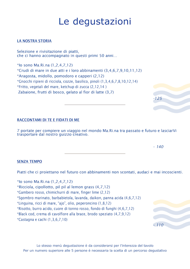 9.5/10The absolute top quality of the dishes is a must for a stared restaurant, but the inovative way how to combine the engredients was stupendous! Row fish? No better place then the "MA.RI.NA". Love wine? I bet you will come back for mpre!