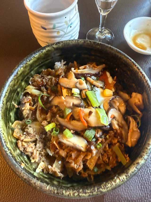 - Poulet pané, ceuf, sauce teriyaki, Copeaux de bonite