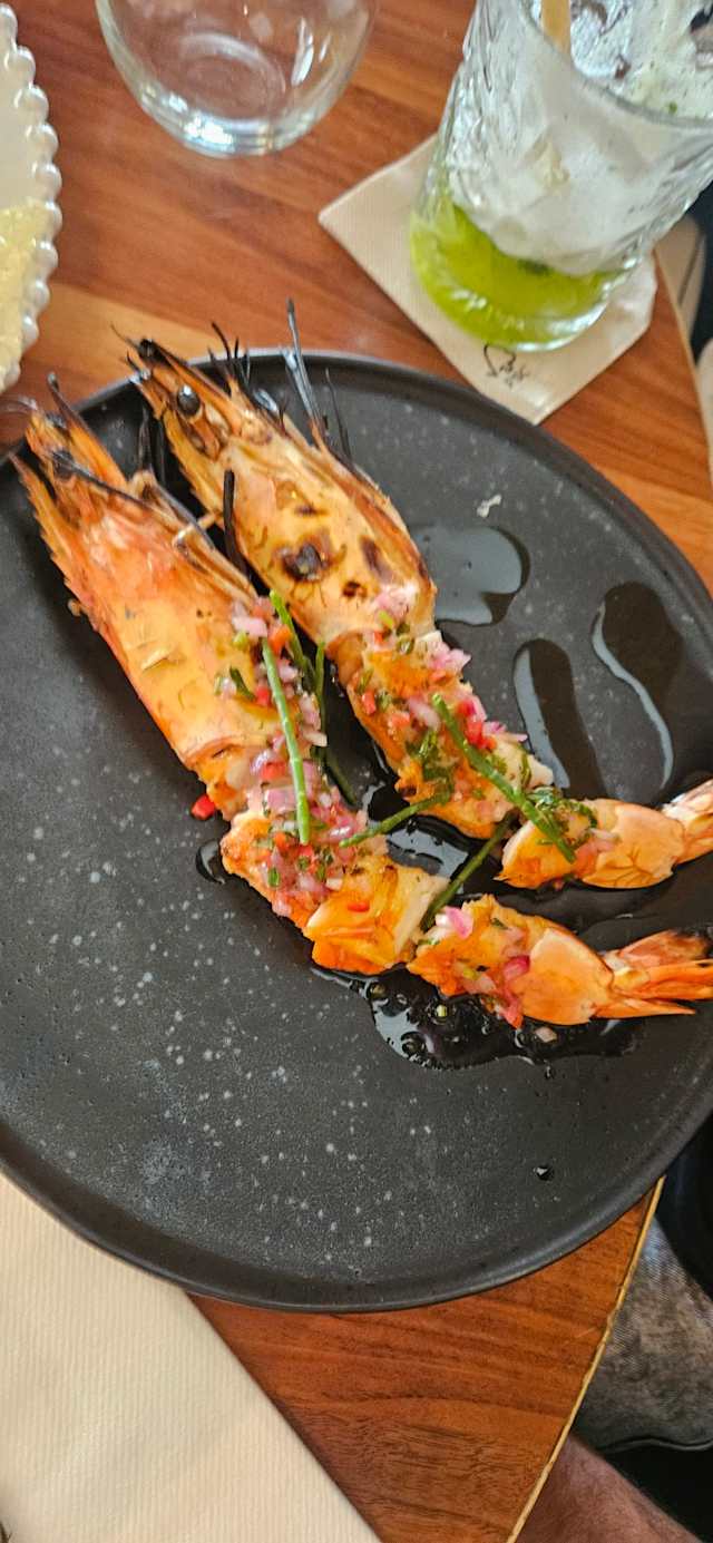10/10Food was great, perfect in fact. We had the tiger shrimp, polvo, and hake filet. Sides of grilled vegetables, almond rice and a salad. Everything was excellent, tasty, perfectly seasoned and presented. Service was attentive and so efficient. We sat facing the river, watching all the boats go by on a cool summer day. It was a perfect experience