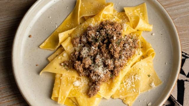 I nostri primi sono tutti rigorosamente fatti in casa, a mano, proprio come abbiamo imparato dalla nonna Clara fin da piccole. Uova di galline cresciute all'aperto, che rendono la nostra pasta elastica, consistente e sana. Ogni settimana proponiamo almeno due tipi di pasta differenti.