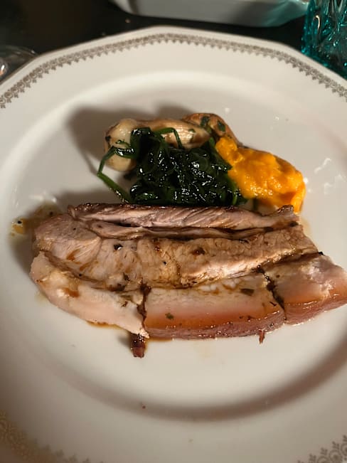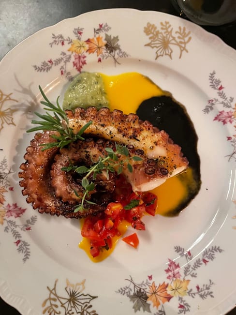 9/10The Chef is the immediate centre of attention as he greets you expansively on entering. That is part of his character & continued when each dish was presented and he gave them the blow torch treatment. It reminded us of some restaurants in the 1970s in the UK and France when the head waiter cooked your 'Steak DIane' at the table finishing it off by flaming off the alcohol. Then a small table with growing herbs was brought over. With panache he snipped off, various fresh growing herbs to add to the dish. Overall he put a smile on our faces. The two servers were good. We had a lovely salad Ortigia which also contained some tasty seasonal fruit. The octopus and beef Tagliata received the torch and we both loved them. The red wine is kept, properly, in a wine fridge at 18 degrees. We drank a bottle at 30E which we enjoyed. That is about the starting price point for the wine. We enjoyed our meal. The menu price of our meal with salad, octopus starters & two tagliata & drinks was 166E.