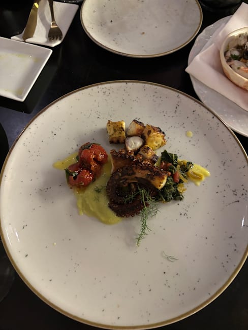 7.5/10We actually ate here twice. First night was really good. Portions small so better get a couple of courses. We actually went back for a second night. I had the stuff squid. Sorry - but it came out cold and portion was really small. Sat outside second night - decent people watching but had to listen to scooters, motorcycles, and electric scooters. Fancy presentations and owner/manager certainly a dynamic character. Wish second meal was better. Restaurant was 400 meters from our hotel. In hindsight - wish meal second night was better or we tried something different. This place was not cheap - with 10% tip dinner for two first night was $165 and second night was $176. That was what we were paying on the Amalfi Coast in Positano with beautiful views of Bay and Marina.