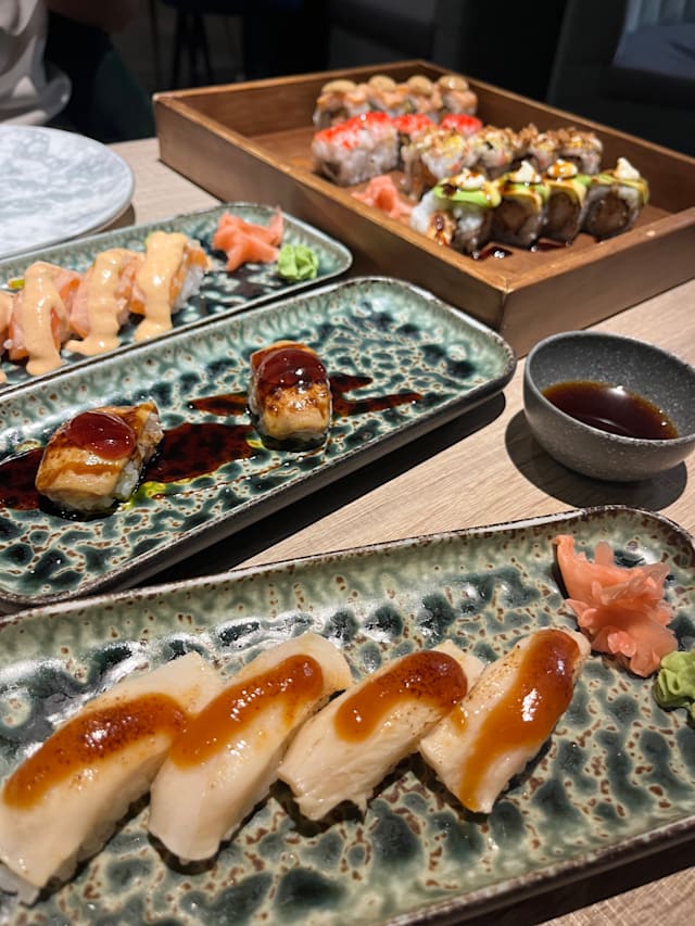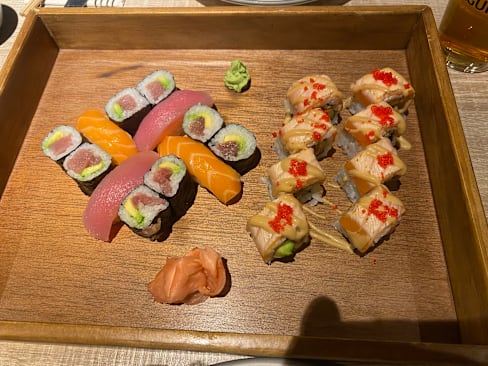 9.5/10Very nice food, we loved the sushi rolls and the tuna nigiris (the tuna was of very nice quality). Lovely service too