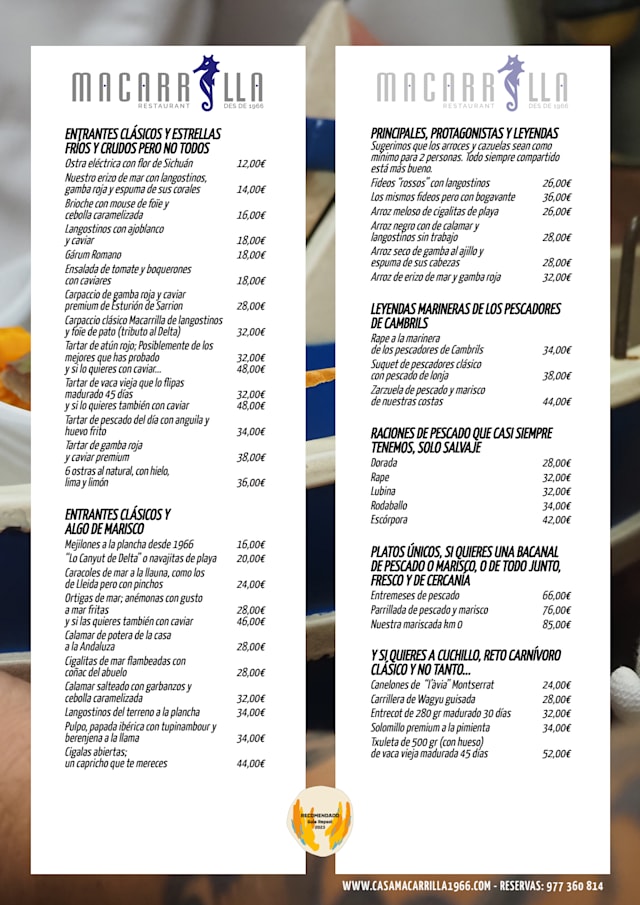 Menú macarrilla€90 per guest
