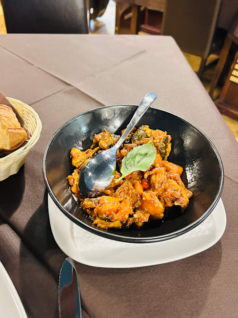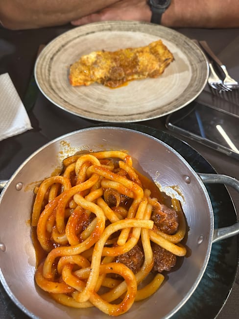 8/10Food was tasty but felt like savings were being made without very few prawns in prawn dish and hardly any aubergine in maccaruni alla norma. Flavours were good though. Also disappointed that didn’t get told that pizza oven was down until our order was taken 20 minutes after arrival - difficulties ensure trying to find something that our fussy teenager would then eat. Restaurant showed some good flexibility on this. Ambience somewhat ruined by loud motorbikes driving up and down the road beside the table.