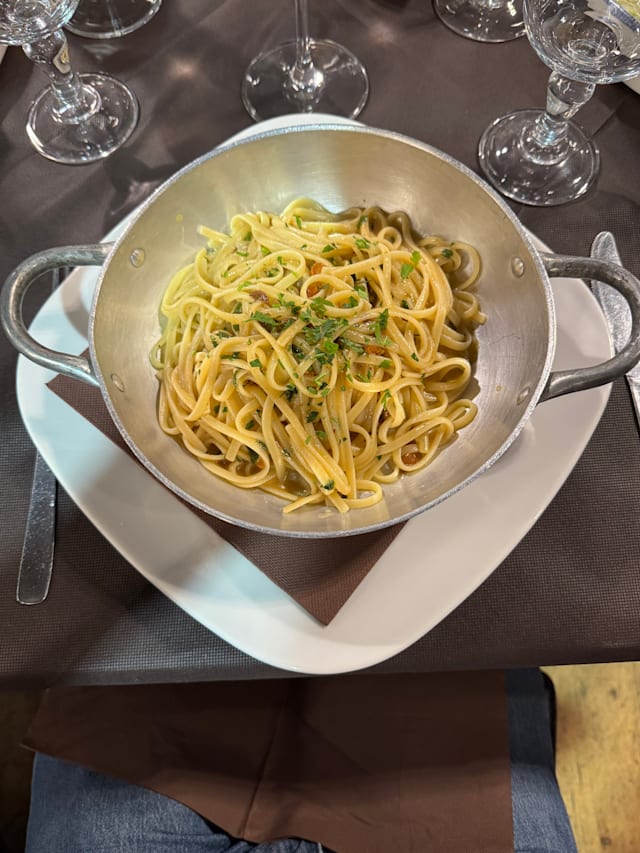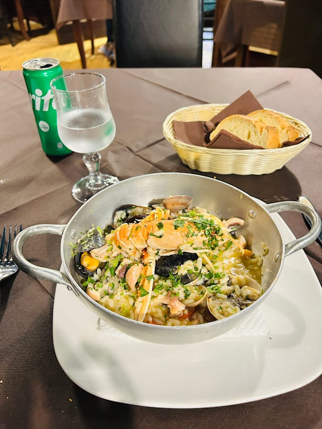 6.5/10Restaurant is correct but Pasta don giovanni at 25€ is expensive for what you get...tiny shrimp and nothing else. Outside the place could be nice but too many cars and scooters pass close the street with noise and smell of Co2 is not enjoyable. Service is nice and fast that's the good point.