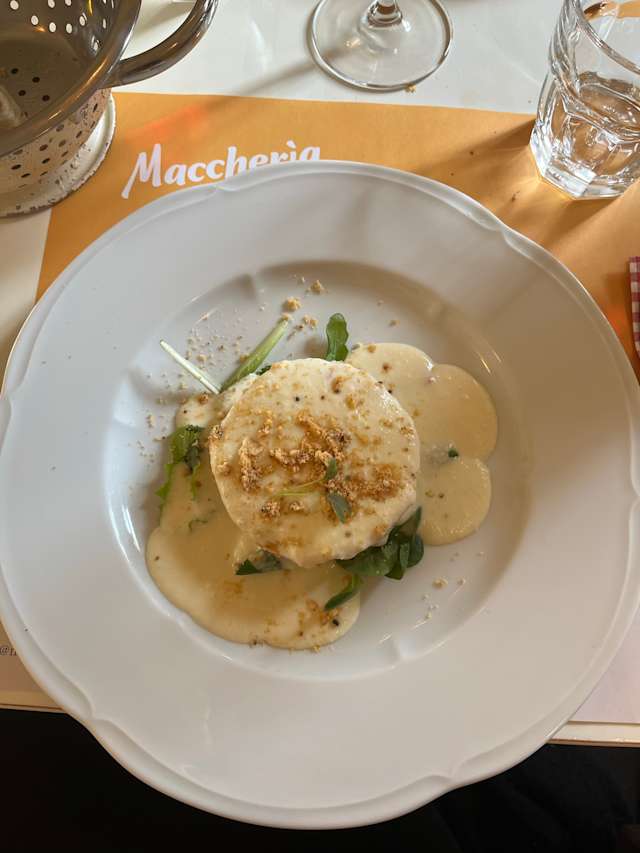 10/10Pastificio con cucina — Maccheria was a perfect treat to discover regional gastronomic jewels. The menu is excellent, offering both creative and traditional dishes. A highlight was the evergreen agnolotti al plin filled with carbonara sauce, a surprising twist, as well as the more traditional version served in a vintage pan with a classic, wine-based meat sauce — simply outstanding. The atmosphere is sympathetic and uncomplicated, just the right balance between cozy and authentic. As is typical for this region, the service was extremely friendly, making the whole experience warm and memorable. Highly recommended for anyone who wants to dive into the true flavors of the area.