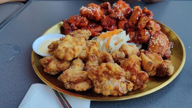 7/10The sauce was original, different from other corean restaurants'...it was fade and watery. The kimchi pancake was served with vinaiger instead of soy sauce or sort...new experience. And the fried chicken was a bit dry.